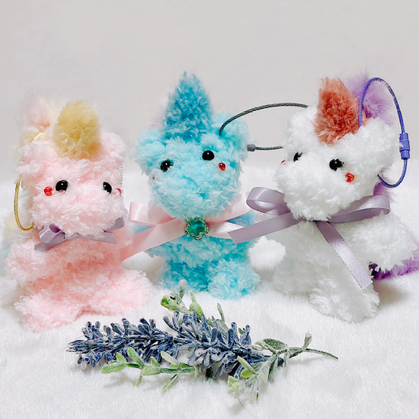 いろんな色のフワフワもふもふのモールから、好きな色を選んで、目・頬・パーツをつけて、オリジナルのユニコーンをデコしちゃおう!ワイヤーキーホルダーに通したら、オリジナルキーホルダーのできあがり。お気に入りのバッグにつけてお出かけしよう!