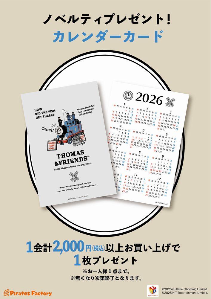 トーマス商品を1精算税込2,000円以上お買い上げで「カレンダーカード」を1枚プレゼント。