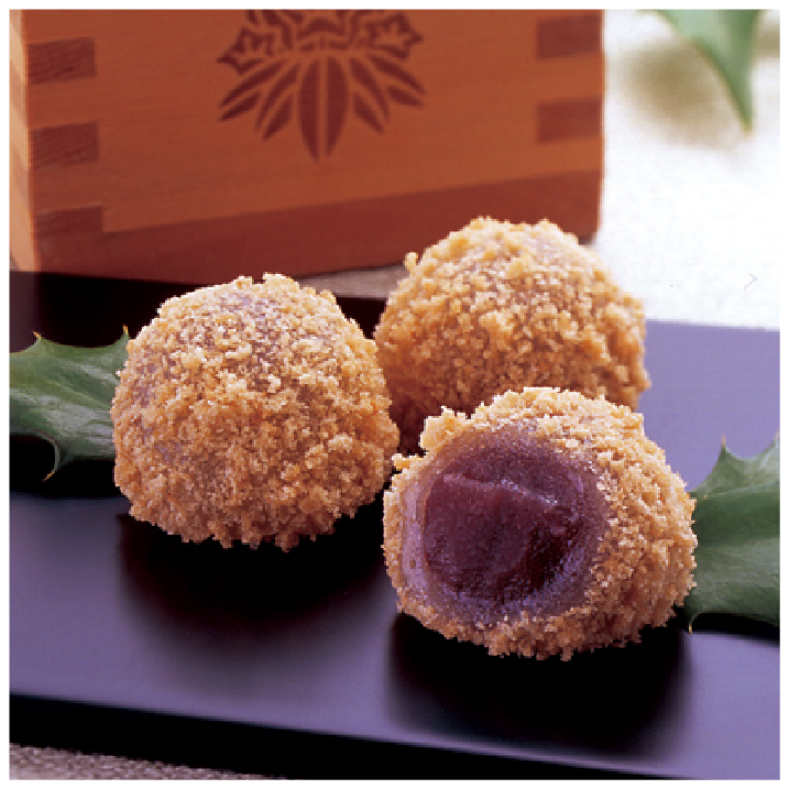 やわらかな求肥で口どけの良いこしあんを包み、黒糖風味のカステラそぼろをまぶしました。