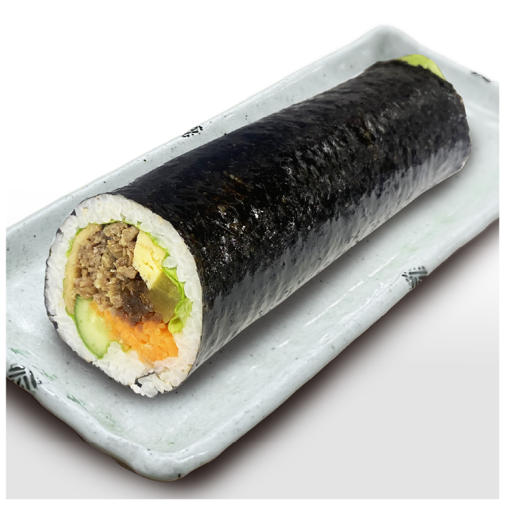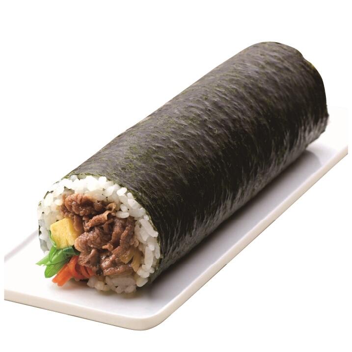 プルコギが入った具材たっぷりの韓国風海苔巻きのキンパ。塩とごま油で味付けをした、食欲そそる味わいです。