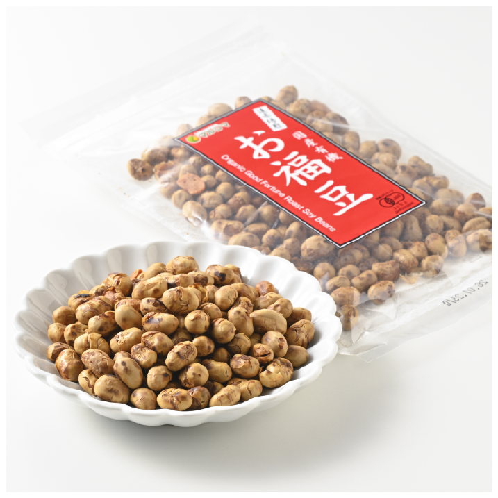 遠赤焙煎によるカリッと食感、深煎りで香ばしく有機大豆の栄養そのままにお召し上がりいただけます。