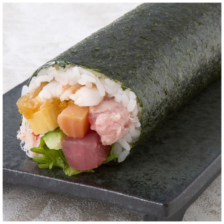 蟹、まぐろ、サーモンなど7種の海鮮を使った、食べ応えのある巻寿司です。
