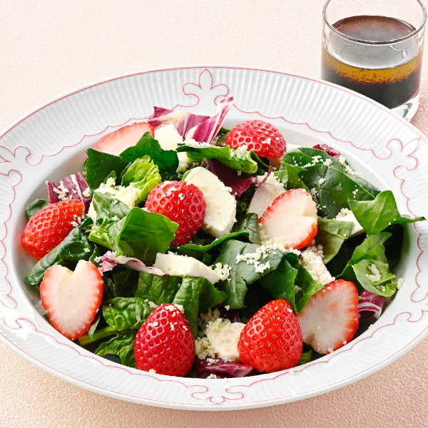 苺を使った爽やかなサラダには、別添えのバルサミコ酢をかけるのがおすすめ!