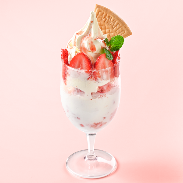 ジューシーな苺に苺氷と牛乳、バニラソフト、苺ソースを組み合わせた相性抜群フロート!