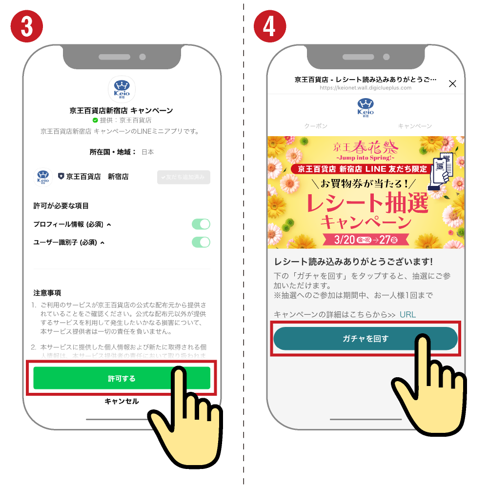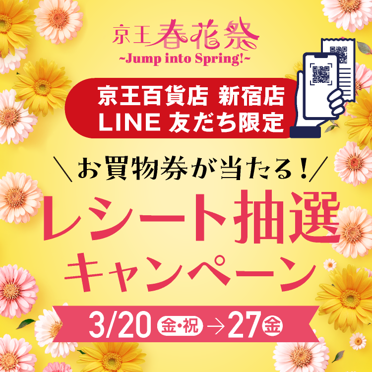 期間中、京王百貨店 新宿店 LINE公式アカウントを友だち登録のうえ、お買い上げレシートに印字された二次元コードを読み込むと、最大3,000名様にお買物券などが当たる抽選に参加いただけます! ぜひこの機会にご参加ください。