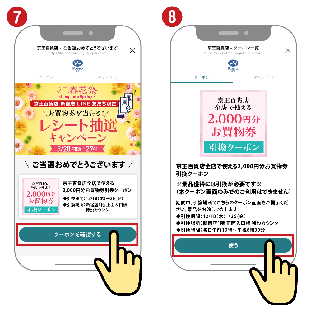 4等:京王百貨店 新宿店で4月から使える500円お買物クーポン券