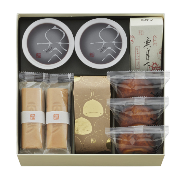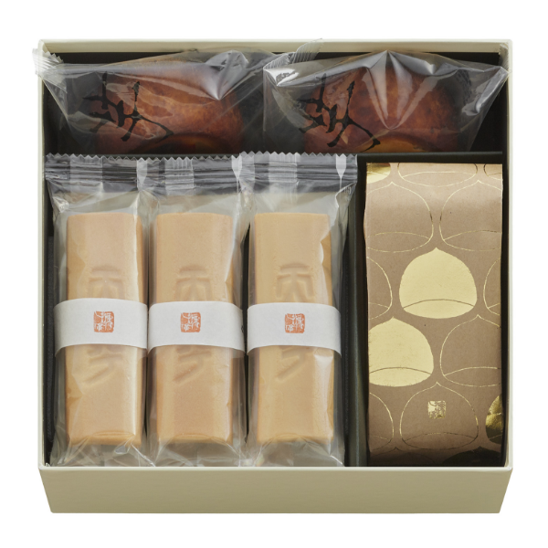 銘菓詰合せ (AUW56)(ふくみ天平4個、栗の子(2個入)1袋、福寿芋3個、栗月下1個、本生羊羹 冬味2個)