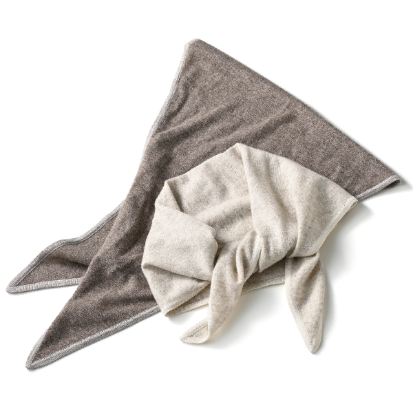 かさばらずに持ち歩けるプチスカーフで気軽に防寒対策。首元でひと結びしたり、頭に巻いたり、ひし形だからアレンジしやすいのもポイントです。