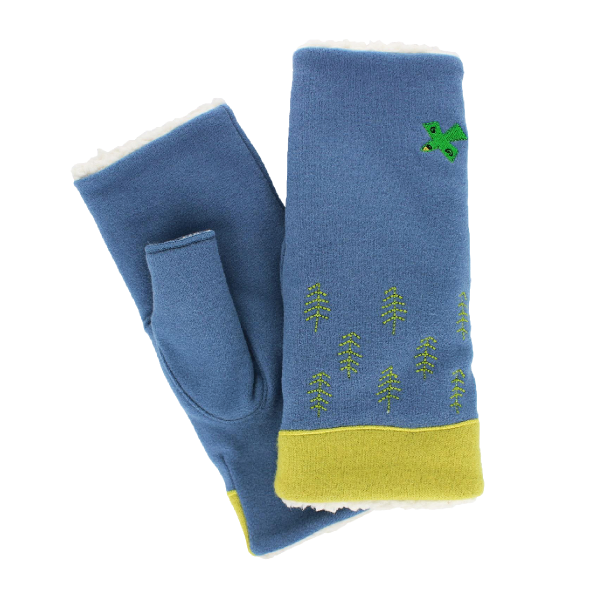 ピッコーネの原画を元にした、左右別柄の刺しゅうデザインがポイント。 裏地のボア素材の二重構造で防寒対策も安心です。