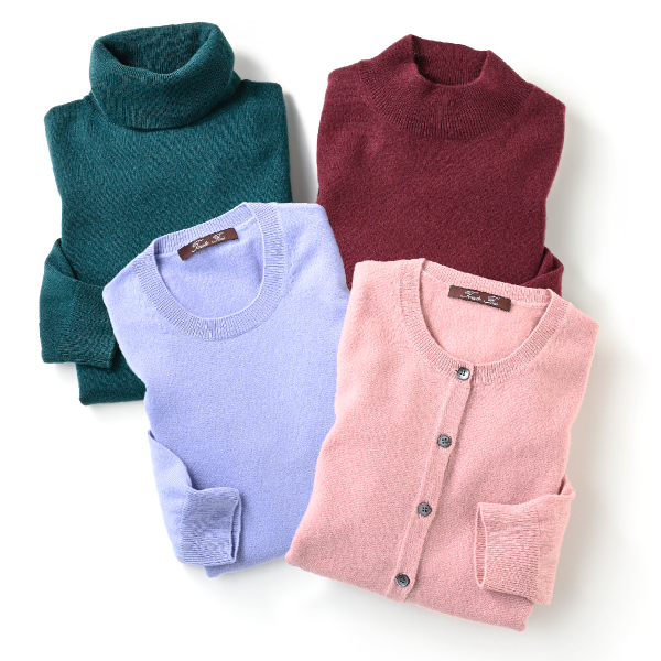 保温性に優れたカシミヤニットをカラフルに。飽きのこないベーシックなデザインを4型ご用意しました。