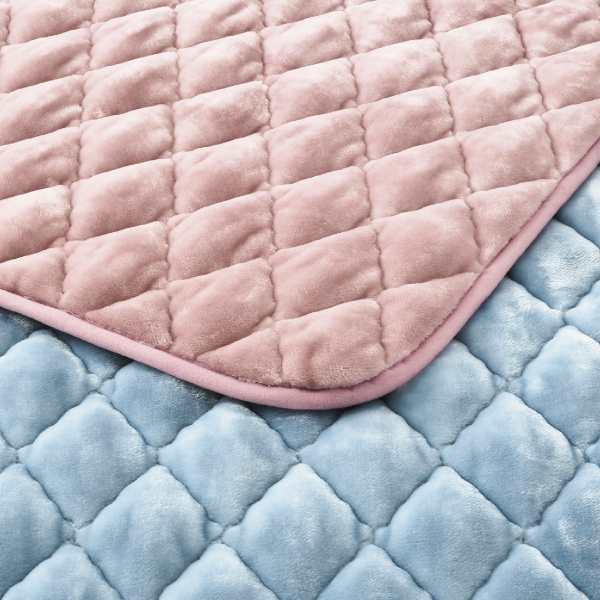 吸湿発熱パッドシーツ(100×205cm、表側:パイル糸(毛羽部分)アクリル85%・レーヨン15%、地糸:ポリエステル100%、裏側:ポリエステル65%・綿35%、詰め物:ポリエステル100%)