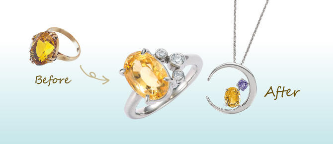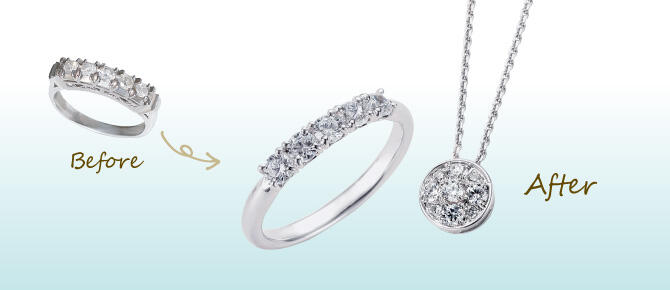 A. ご不要になったジュエリーや貴金属、リフォームでご使用になりたい宝石などをお持ちください。専任のスタッフがご要望・ご予算に合わせてデザインをご提案いたします。