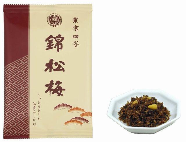 鰹節、白胡麻、きくらげ、松の実、椎茸など山海の幸を素材としている「錦松梅」は、その江戸の風味を今に伝える伝統の「ふりかけ」です。白ごはんの他にもさまざまなお楽しみ方でお召し上がりください。