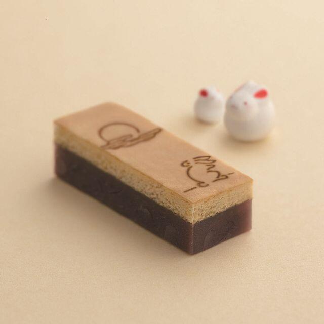 お月見うさぎの可愛らしい焼印をあしらった焼皮と、小豆粒あんを組み合わせた小型棹菓子。