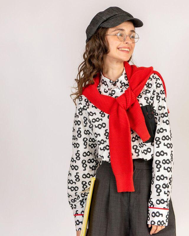 ポケット部分がメガネケースになった[河谷シャツ]オリジナルのメガネ柄シャツ。