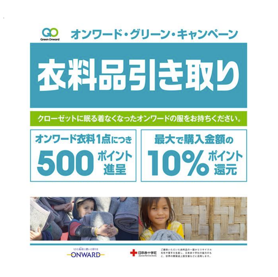 期間中、ご不要になったオンワードのお洋服を「オンワードポイント」で還元いたします。