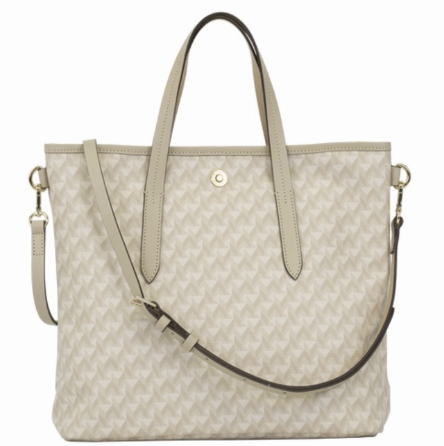 小ぶりな見た目ながら、15cmのマチがあるため、長財布・日傘・ペットボトルなど、日常に必要なアイテムをしっかり収納可能。さらに、取り外し可能なショルダーストラップ付きで、ハンドバッグとしてもショルダーバッグとしても使える2WAY仕様が魅力です。