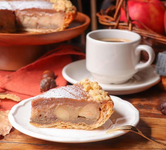 芳醇で奥行きのある2つのクリームがりんごの爽やかな酸味と重なり合う、しっとりと上品な秋の新作アップルパイです。