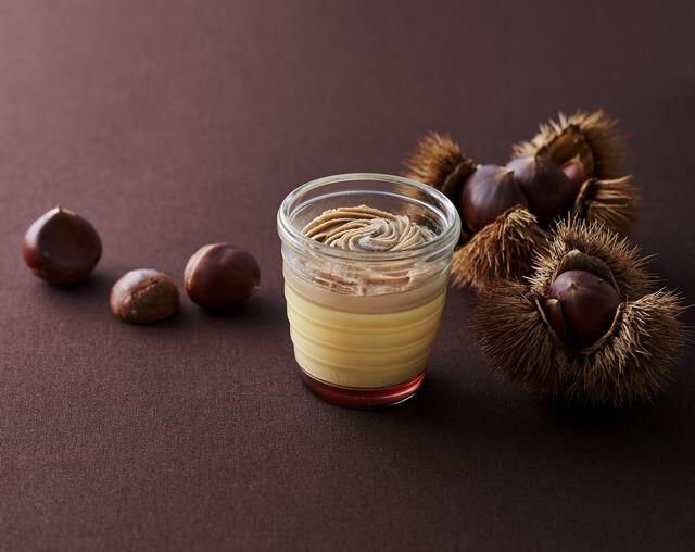 栗の王様と呼ばれる「利平栗」は、大粒で甘みが強いのが特長。利平栗の甘みと食感を残したマロンクリームを、[モロゾフ]人気のカスタードプリンの上にたっぷりと絞りました。