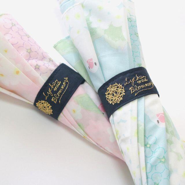 優しい水彩風プリントの白いコデマリのお花と白文鳥さんがかわいい雨傘です。
