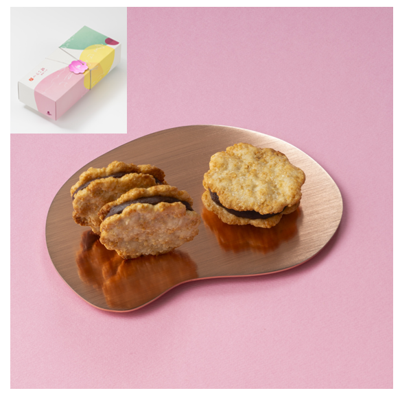 ●米菓:ひらひらと舞う花を思わせるお煎餅はほどよく残る粒感から軽やかな食感を生み出し、噛むほどにお米本来の香ばしさがふわりと広がります。
