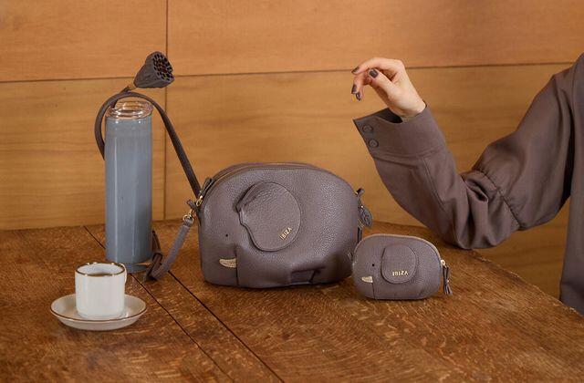アイテムはポシェットとポーチの2アイテム。ふっくらしたソフトな牛革を使用し、丸みのある可愛らしいシルエットの象をデザインしました。