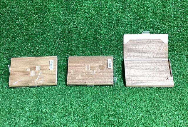 秋田杉を薄くスライスして作った名刺入れです。とても軽くて使いやすく上品に仕上げました。名刺が約10枚入ります。