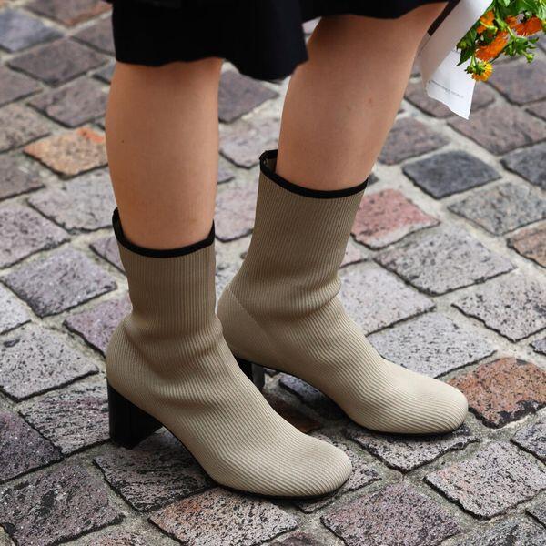 トレンドのオブリークトゥで足指に沿ったゆったり設計の6cmヒールブーツ。細リブ編みのニットアッパーで足を美しく見せ、キレイめデザインでお仕事スタイルにもぴったり。