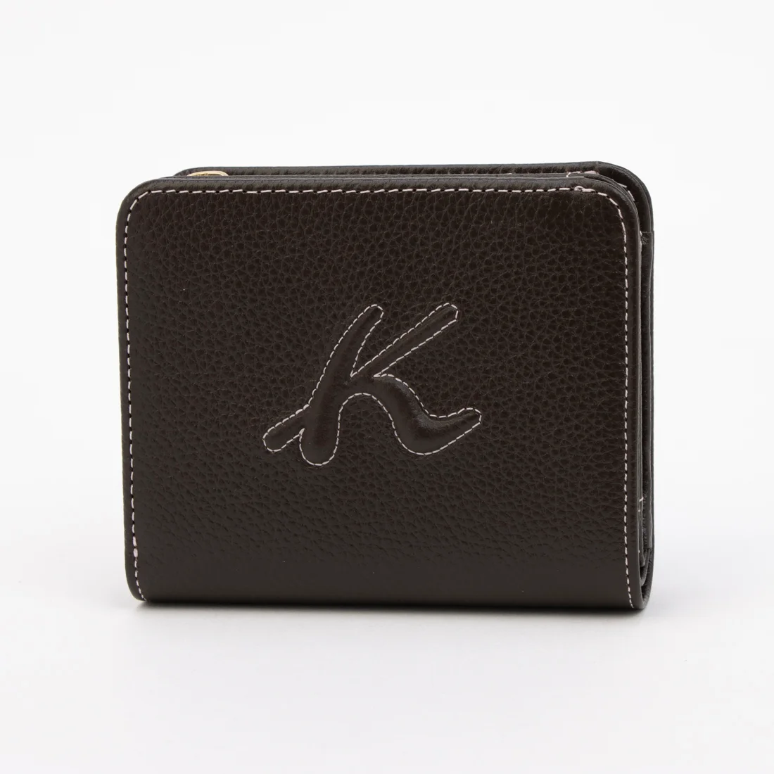 浮き出しの大きなKマークが目を引く二つ折り財布。
