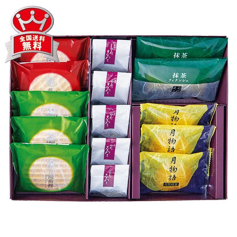 (ぬれ甘なつとお手玉32g×5、花園煎餅〈小倉×2、抹茶×3〉、抹茶フィナンシェ×2、月物語×3)