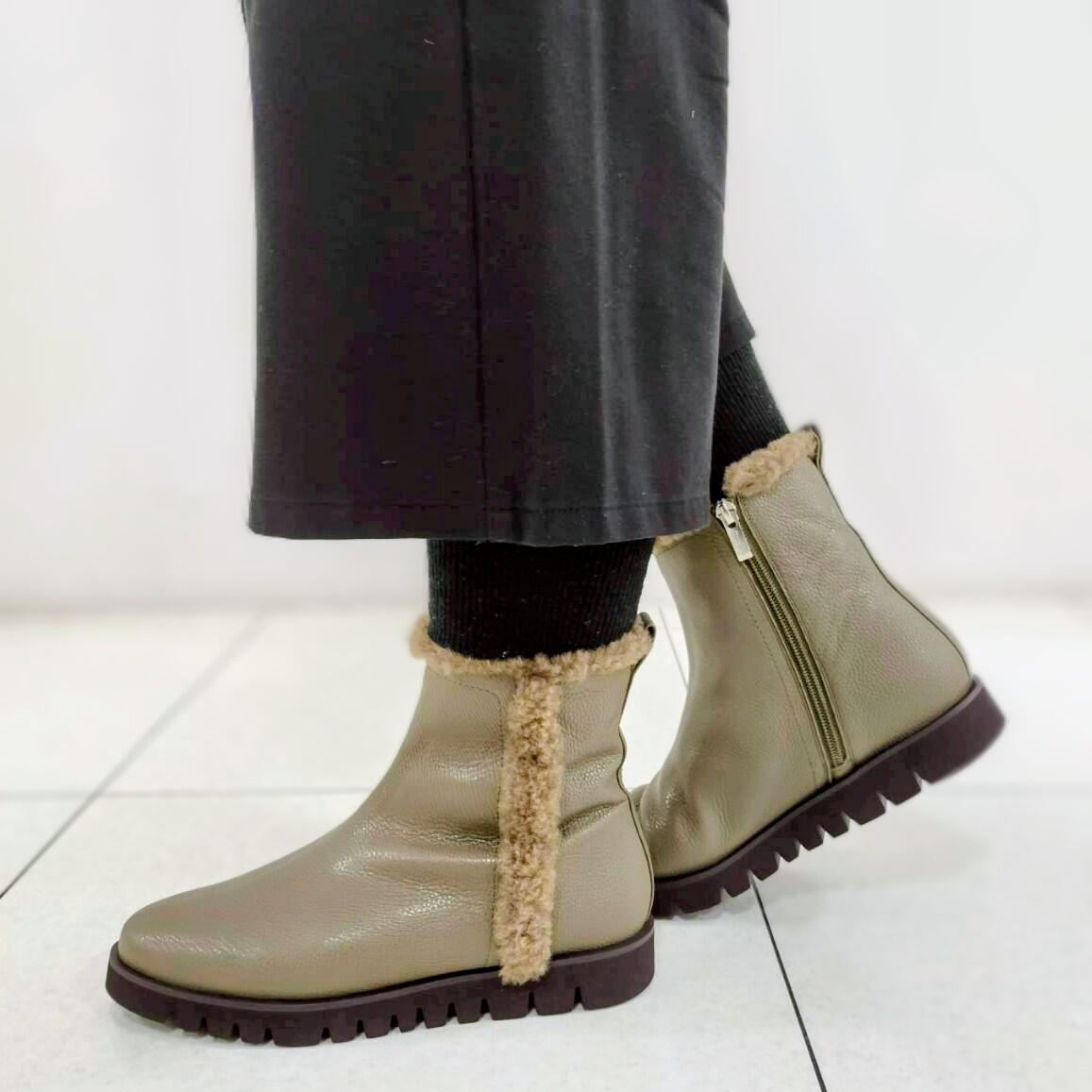 筒裏のボアが暖かく、サイドからのぞくボアがワンポイントのショートブーツ。