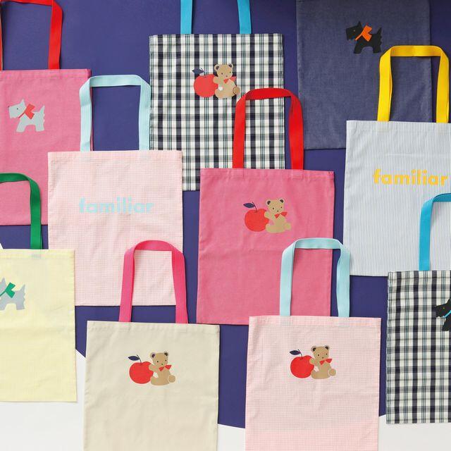 [ファミリア]のお洋服など、ものづくりの過程で生まれる生地の残反をアップサイクルしたバッグ。