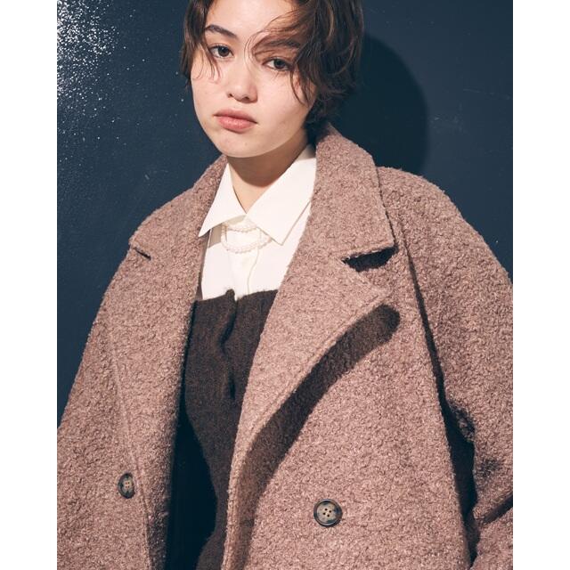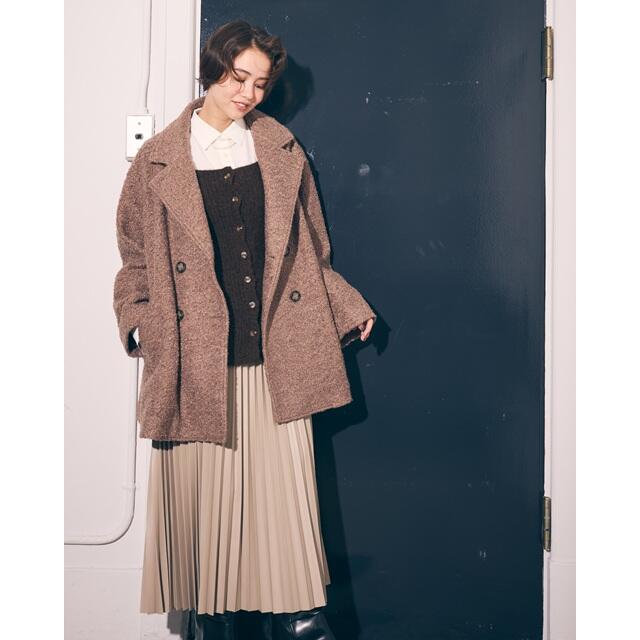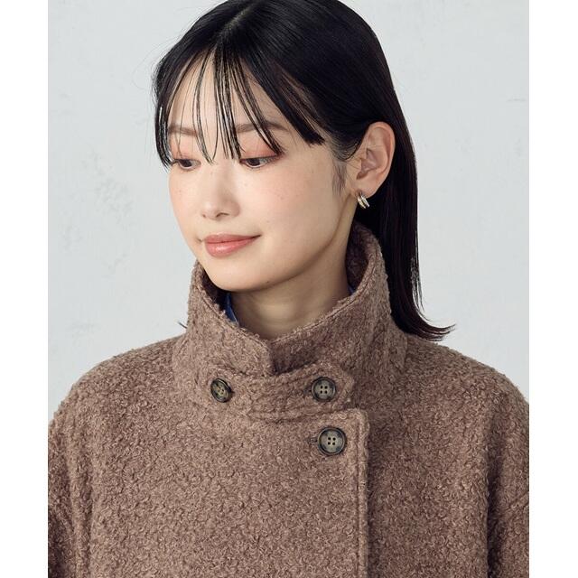 襟をたてチンウォーマーを留めるスタンドカラーと、襟元を開いてPコート風の2通りのスタイルが楽しめるコートです