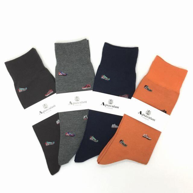 アクアスキュータム人気のモチーフ柄シリーズのカジュアルソックスです。カラフルなスニーカー柄モチーフの華やかなデザインです。