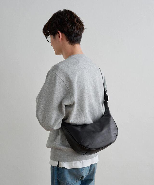 手持ち、ワンショル、斜め掛けの三通りの持ち方が楽しめる、柔らかレザーのラウンドショルダーバッグ。ユニセックスで使っていただけます。