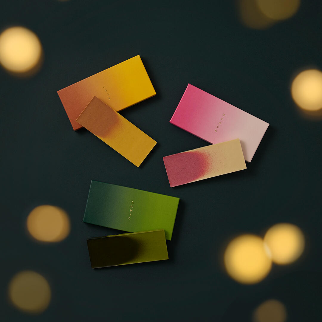 インドネシア・スラウェシ島の農園で育ち丁寧に発酵された芳醇な香りのカカオをふんだんに使い、独自で配合したホワイトチョコレートです。味付け、色付けはフルーツやお茶、塩などのすべて自然由来の素材を使用。見た目も華やかなグラデーションを2種類のフレーバーで仕上げました。
