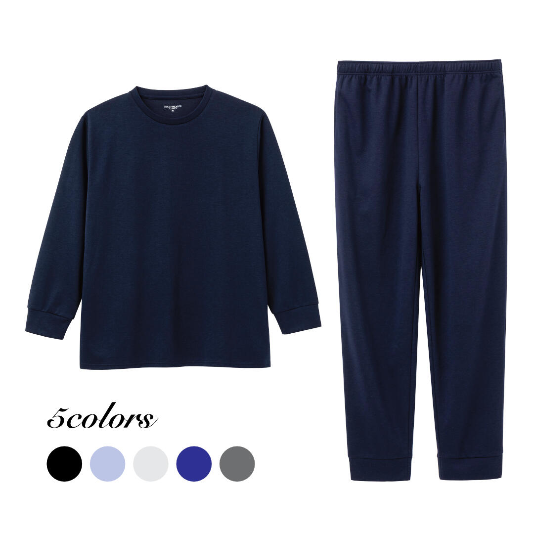 着るだけで疲労回復をサポートしてくれるリカバリーウェアを、お求めになりやすい価格で販売。袖口やパンツ裾はリブ付きなので、家事などをする時に邪魔になりにくく、裾が上がってきにくいのも嬉しいポイント。ルームウェアとしてはもちろん、ジャケットのインナーTシャツとしてお仕事にも着ていけて便利です。ユニセックスに着られる5色展開。今回は、MサイズとLサイズの中間に、おなか周りをゆったりめにお作りした「ゆったりM」サイズもご用意しました。上下別売なので体型に合わせてそれぞれのサイズをお求めいただけます。