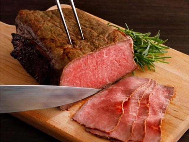 A5またはB5に評価された、最高ランクの牛肉のみを使用したこだわりのローストビーフです。サシと赤身のバランスが絶妙で口当たりがよくまろやかな風味が特徴です。