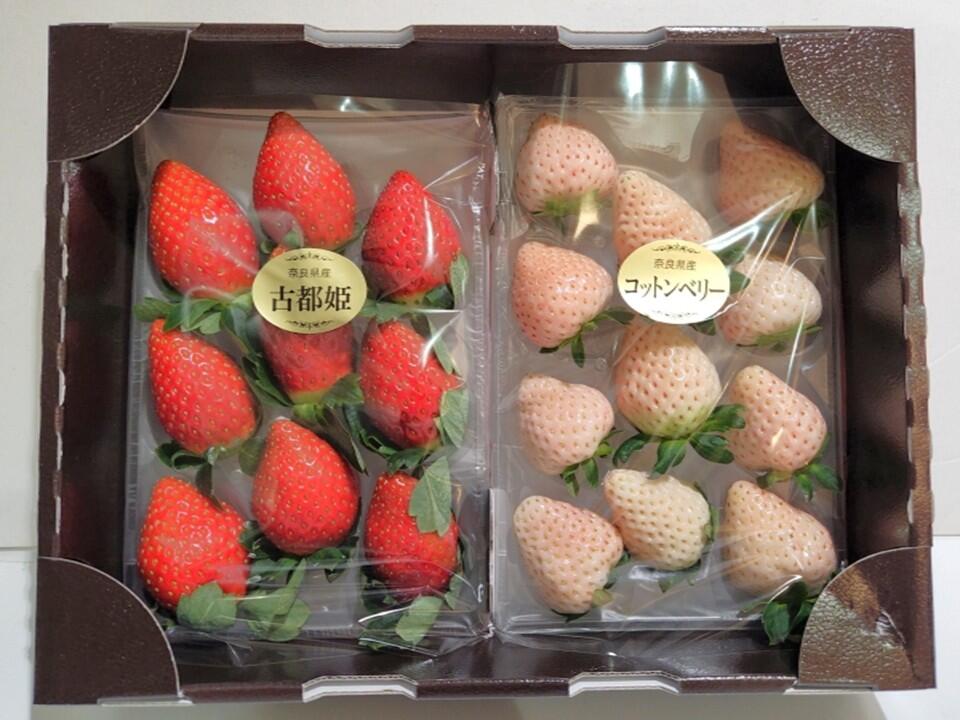 果肉がしっかりとしていて甘みが非常に強い「古都姫」、従来の白苺の常識を覆す味わいで、酸味と甘みのバランスの良さが特徴の白苺「コットンベリー」どちらも奈良県の凄腕3名で構成される生産者団体「トップベリー」でしか栽培されていない希少な苺です。
