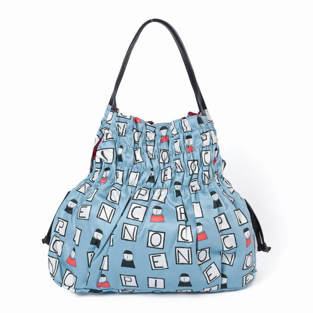 バッグを開け閉めせずに取り出せる外側サイドにファスナー付きポケットを2つ付けました。鍵やスマホやミニ財布などさっと取り出したい物の収納に◎。コロンとした巾着のような愛らしい形とカラフルなイラスト柄はコーディネートのアクセントにおススメ。軽量で肩にかけることが出来る長さの持ち手はお出かけに最適です。A4サイズも入るので、ビジネスにもお使い頂けます。内側には小物が整理できるオープンポケット2つ付き。マグネット開閉は荷物が取り出しやすく便利です。