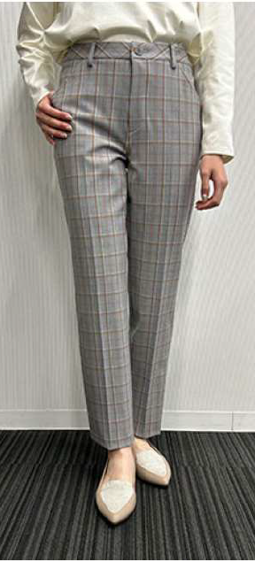 <チェック柄>ポリエステル47%、レーヨン34%、アクリル15%、ポリウレタン4%
