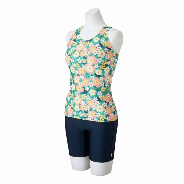 上下に分かれたセパレート水着で、背中の露出を抑えた「カバーバック」は安心感をお求めの方におすすめです。