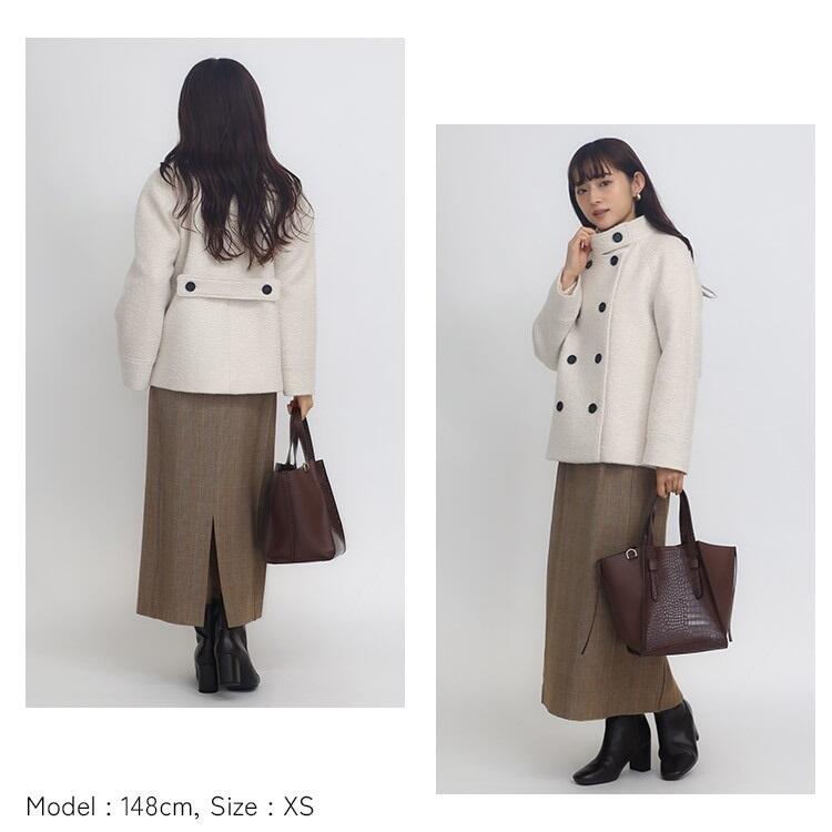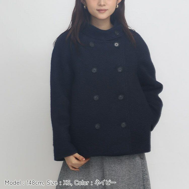 ふわふわとしたループ状の表面が特徴で、軽く羽織れる暖かいアウタージャージ素材。スタンドカラーと可愛らしい素材感がポイントのハーフ丈Pコート。