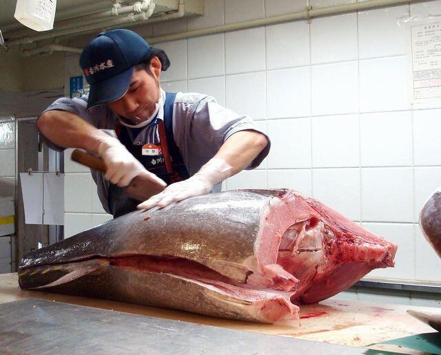 目の前で職人が鮮やかに捌く、生本まぐろの解体ショーを開催!