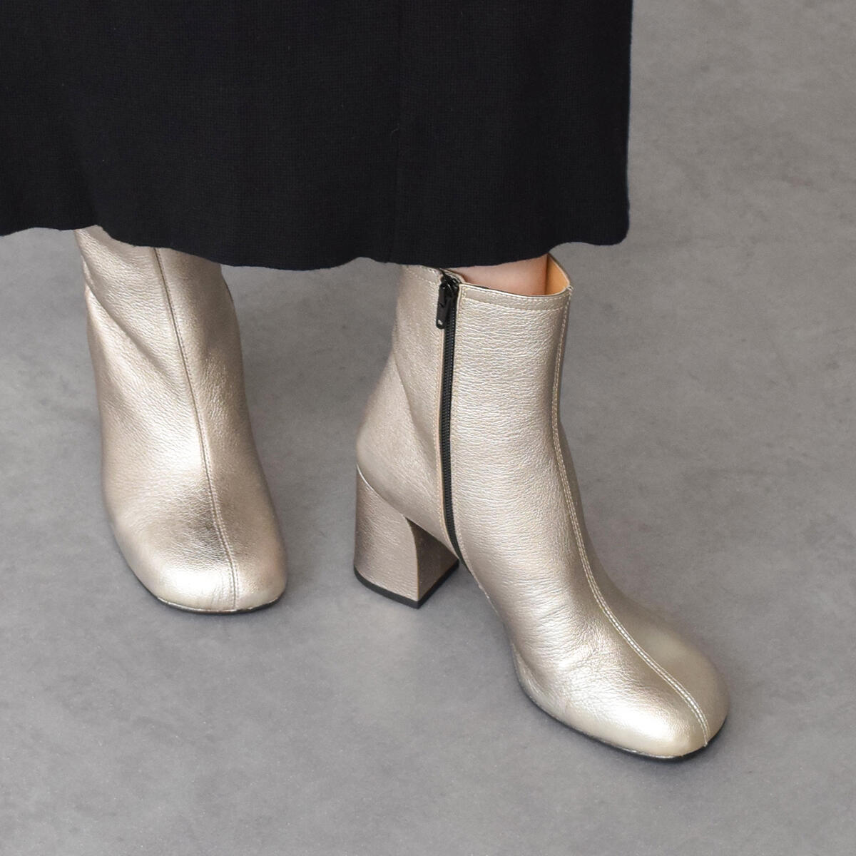 スクエアトウミドルヒールレザーブーツ…22,000円