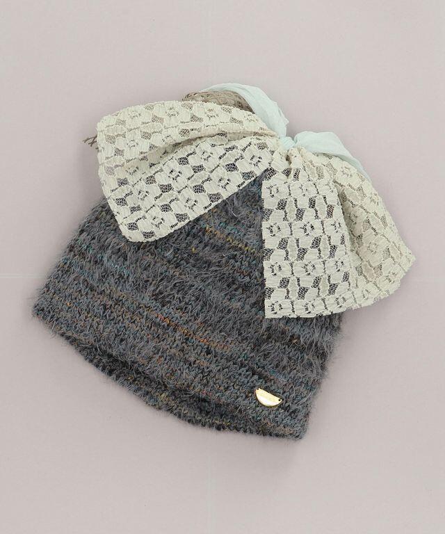 レース・メッシュ・チュールを組み合わせた、大きなリボン付きのシングルニット。