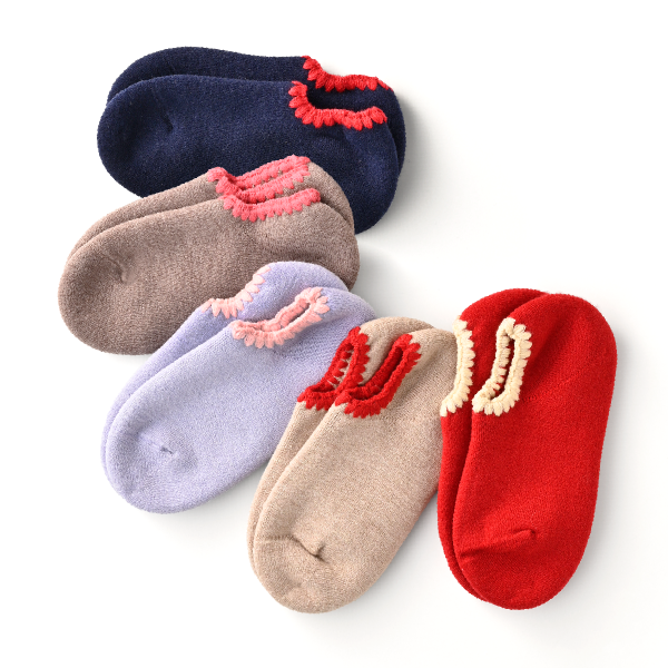 約70年間、販売を続けているロングセラー商品です。こだわりの日本製。通常のソックスより、内側のパイルのループを高くしています。そのため、クッション性が高く、ふわふわとした履き心地です。