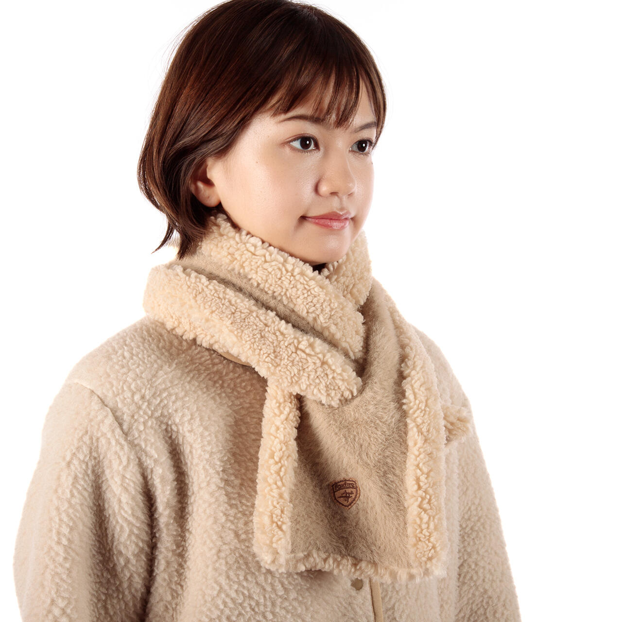 ふわふわした柔らかな手触りが魅力のモールヤーンニットとボリューム感のあるボアフリースを組み合わせた保湿性抜群のマフラー。スリットに通すだけで首に巻ける手軽さが魅力です。