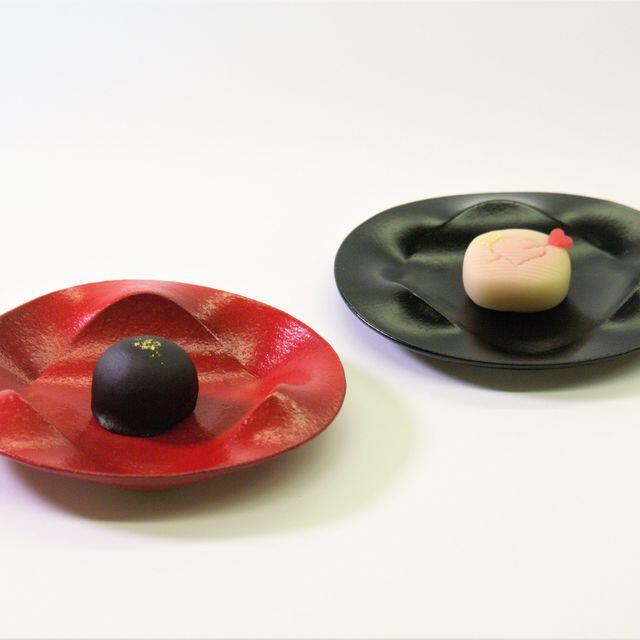 〈右〉ときめき:黒こしあんを練切で包み、心を寄せる方へのメッセージを表しました。