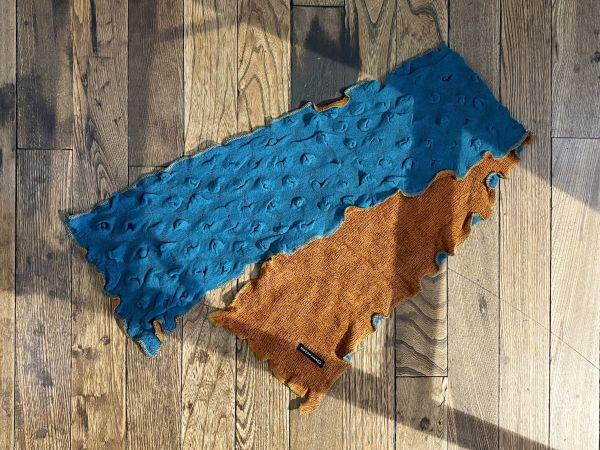 色の組み合わせが楽しい2枚重ねの綿のミニマフラー。心地よい